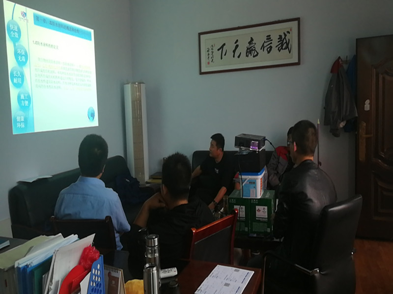現(xiàn)場(chǎng)講解結(jié)束后,在會(huì)議室對(duì)防水工人再次進(jìn)行了立克普防水產(chǎn)品知識(shí)系統(tǒng)培訓(xùn)。從什么是JS防水講起,到如何防止施工中出現(xiàn)問題并如何解決這些異常,讓工人師傅對(duì)我們的防水產(chǎn)品有個(gè)全方位的了解,后續(xù)在施工過程中能有效避免出現(xiàn)異常。